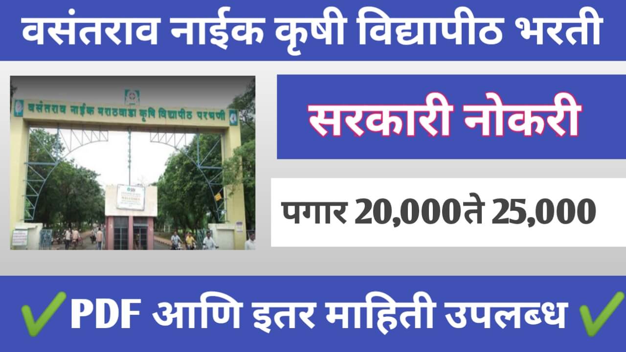 VNMKV Parbhani Bharati 2025, वसंतराव नाईक मराठवाडा कृषि विद्यापीठ परभणी भरती 2025